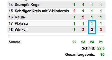 In meiner Statistik tauchten vier Asse beim Plateau (Teller) auf, da meinte es Turnierleiter Klaus Dunker gnädig mit mir. Dafür erntete ich dann von ihm die 3 am Winkel und war somit einer von zwei Spielern, dem das Kunststück gelang, an dieser Bahn nicht mindestens mit dem zweiten Versuch erfolgreich zu sein 😉 .