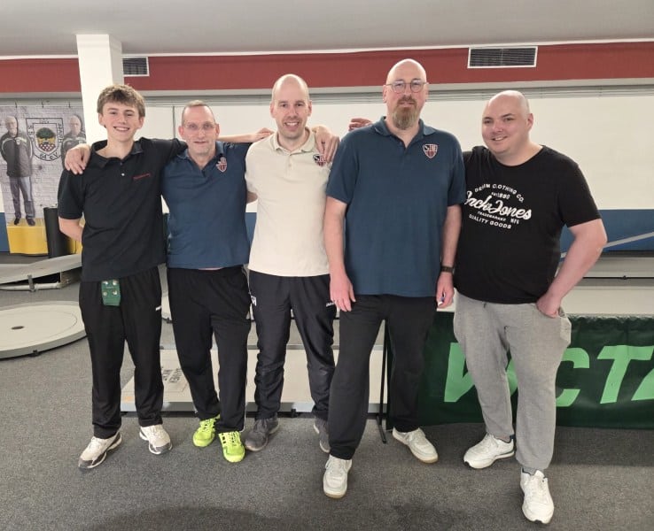 In der Halveraner Halle angekommen, freuten wir uns, die Mannschaftskollegen wiederzusehen: Komplettiert mit Dirk Niehaus und Oliver Hübner waren insgesamt fünf VfBler vertreten.