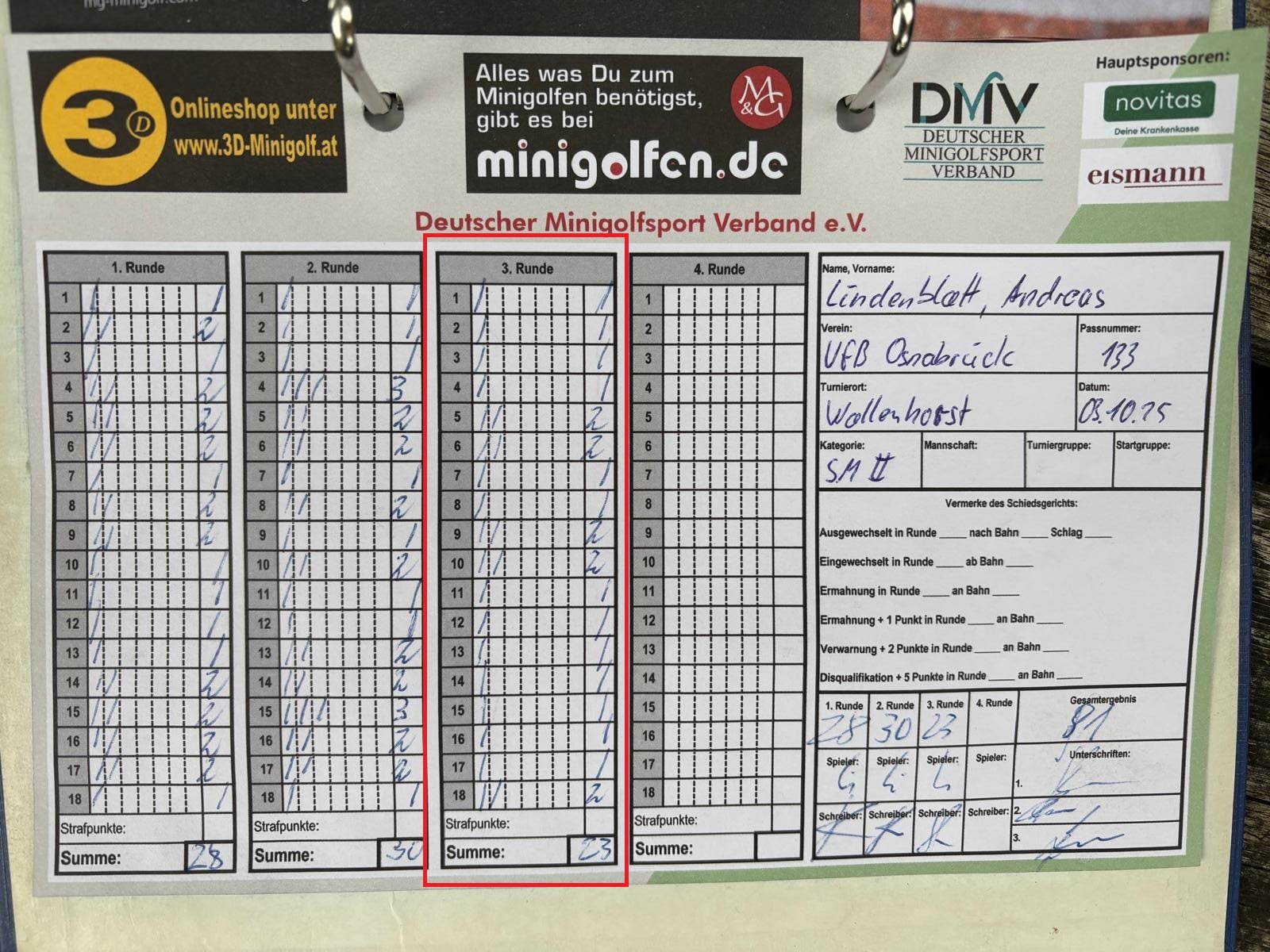 🥇 Andreas Lindenblatt (VfB Osnabrück) – 81 Schläge