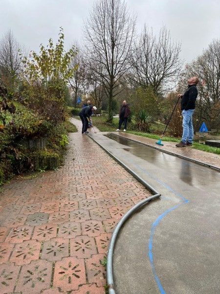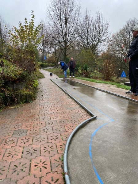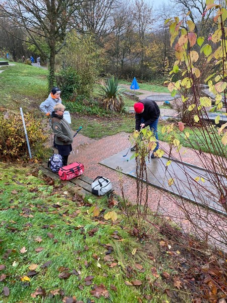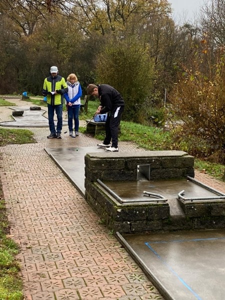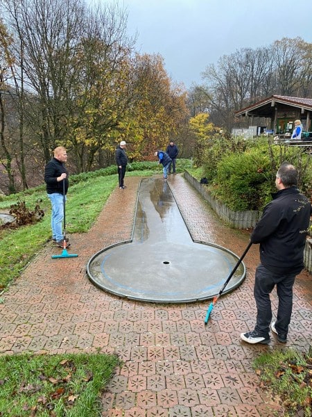 Gestern fand der erste Spieltag unseres Winterpokals im Nettetal statt. Am Vortag hatten wir ganze Arbeit geleistet und auf der Anlage die Umgebung der Bahnen (Äste schneiden & Laub beseitigen) bei kalten und nassen Temperaturen auf Vordermann gebracht.